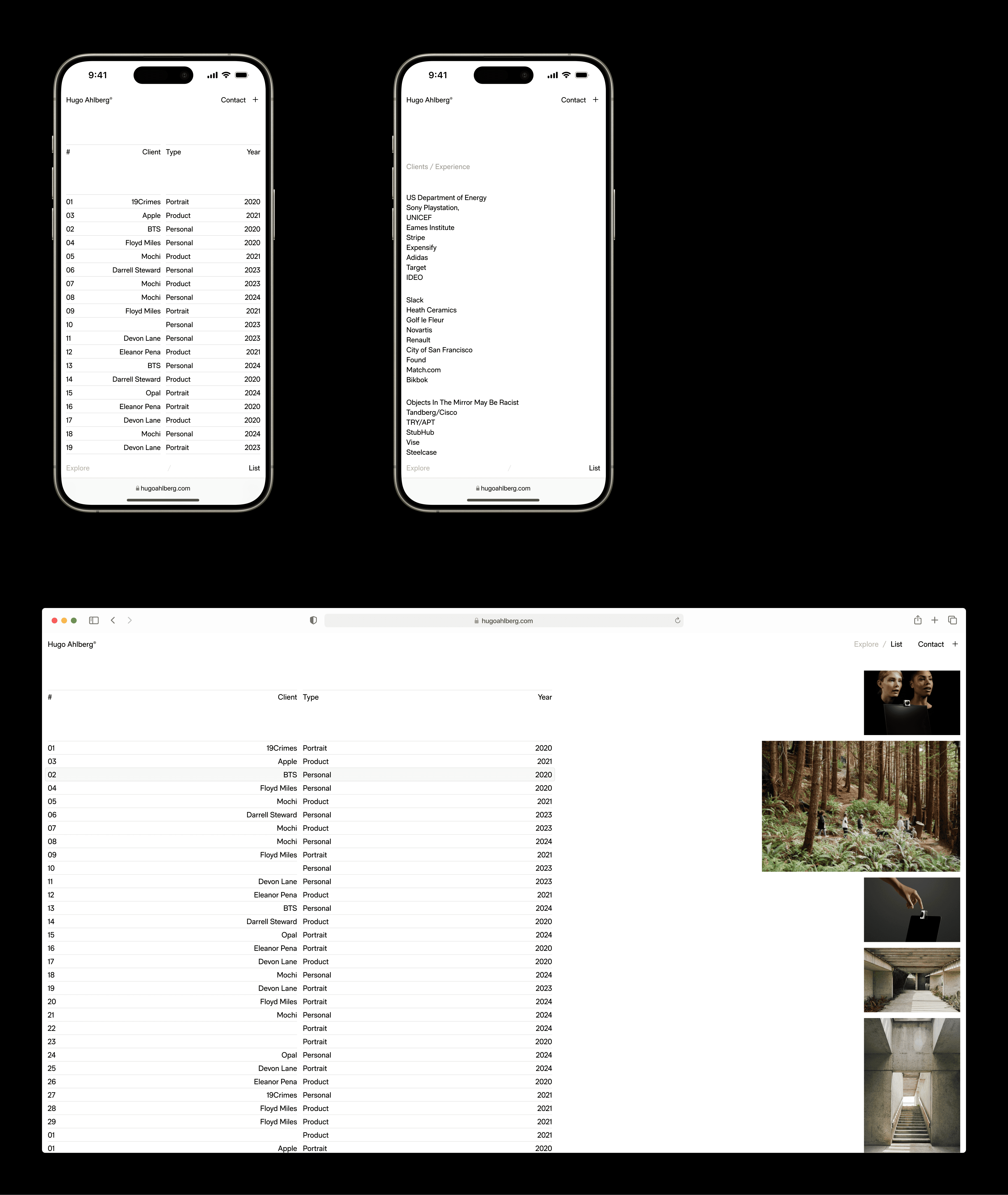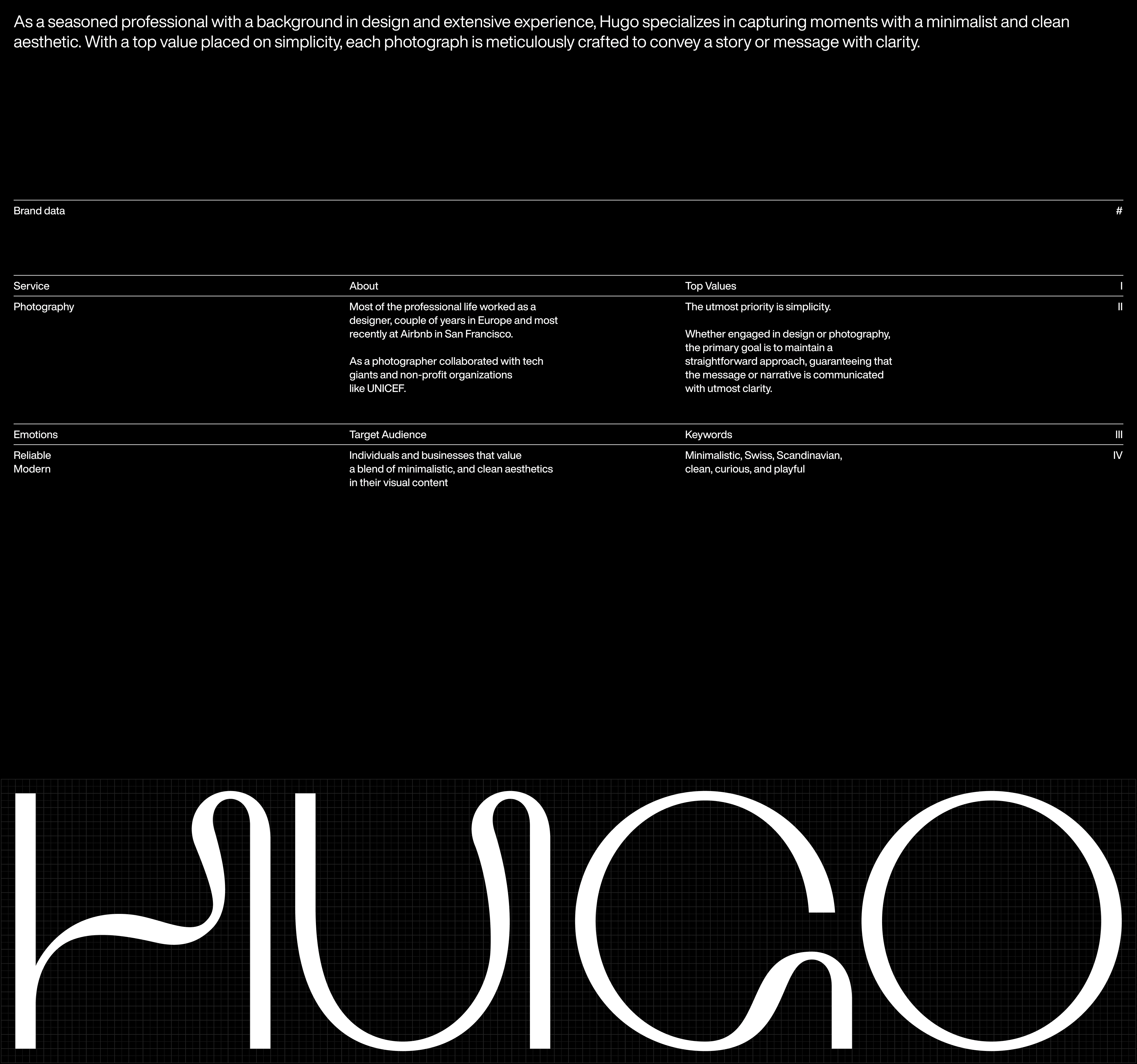 Together with seasonal photographer Hugo Ahlberg, we developed a brand identity and designed a website to shape his digital presence.