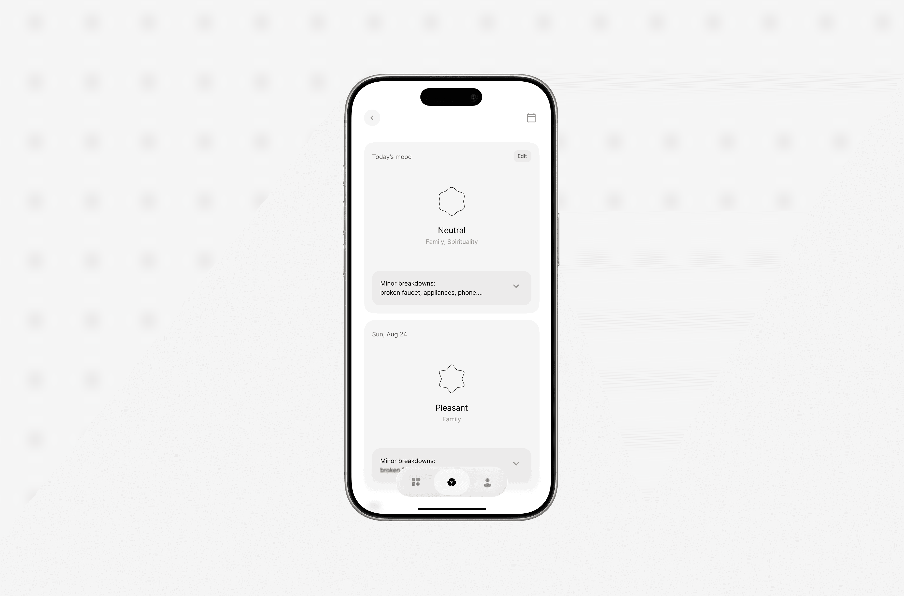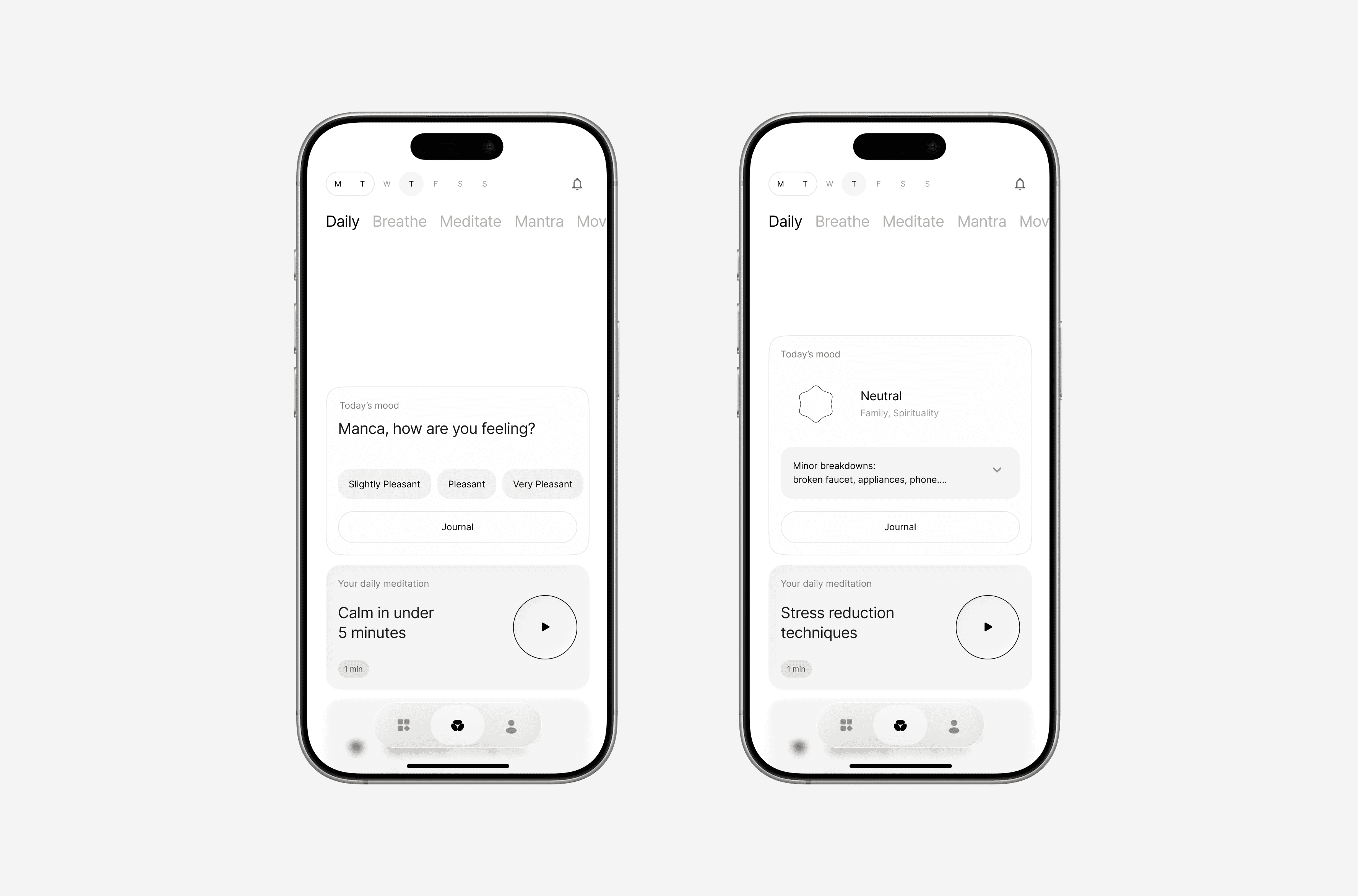 The quick-practice flow held up. The mood logging didn't — shortcuts were unclear and the interaction added friction at the worst moment. Some category labels were too abstract to be useful. Users wanted more expressive, visual emotion input than the first version offered.